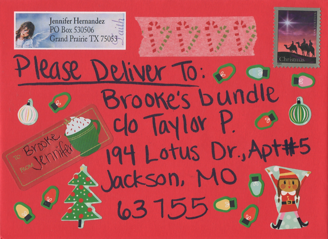 Your letter to Brooke must be postmarked by December 20, 2018.